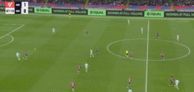 第 45 分钟,哈维 - 在阿尔瓦雷斯包抄之前,加兰传中到门口,足球提前被马丁内斯救出,马竞在上半场结束前未能扳平比分。