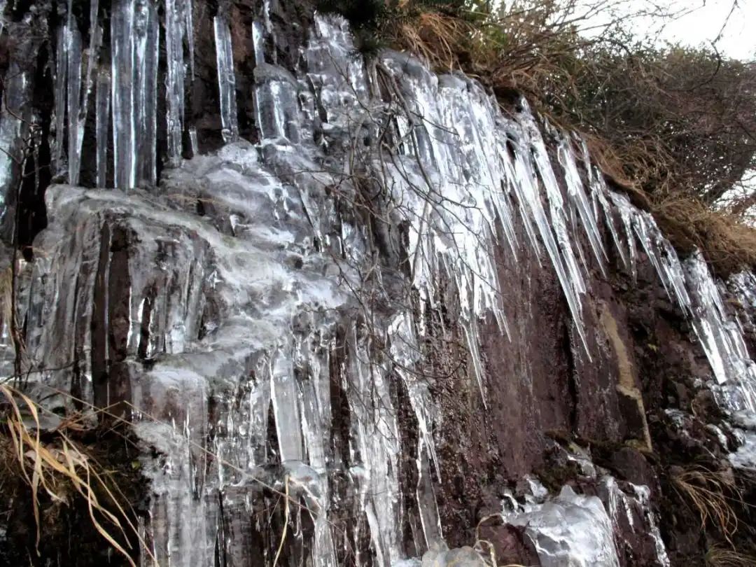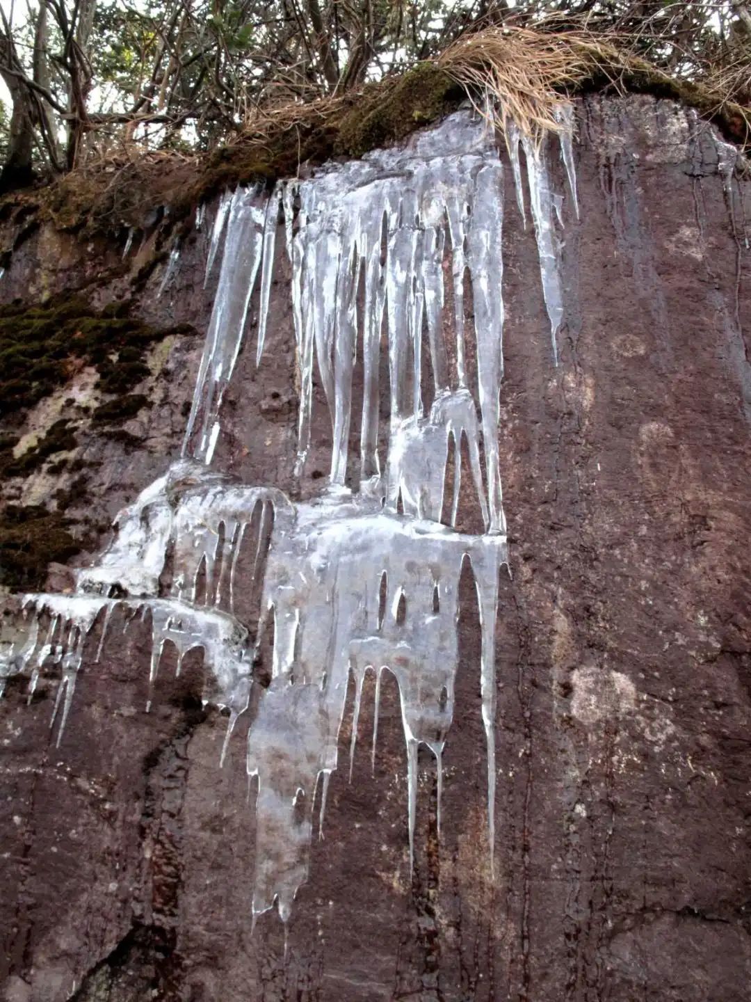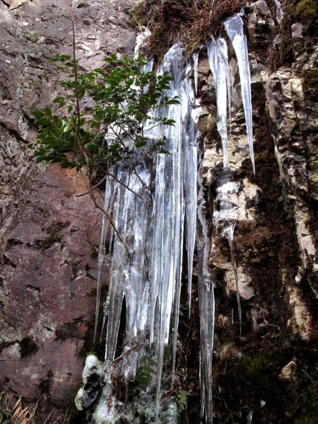 如果气温继续下降,附近的瀑布和悬崖也会呈现出各种有趣的冰景。当然,最著名的地方是四明山森林公园的水帘洞和里村的三折瀑布,以及龙观乡的水门瀑布,然后是宁波丹霞的许多阴坡悬崖。