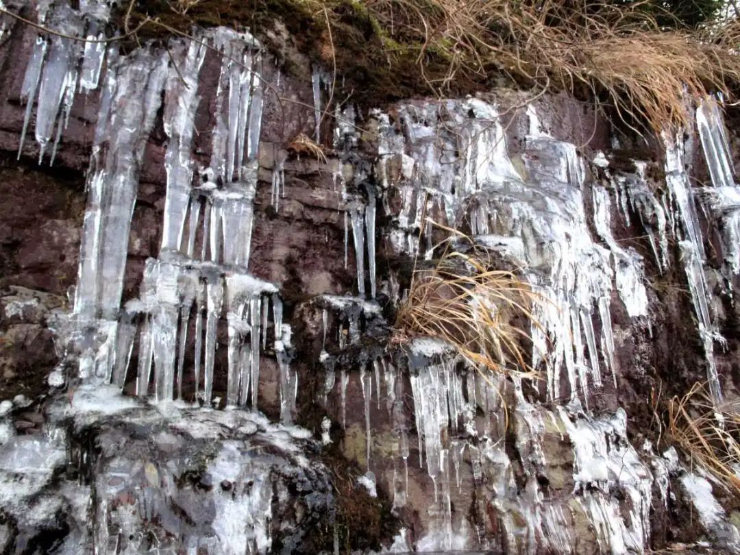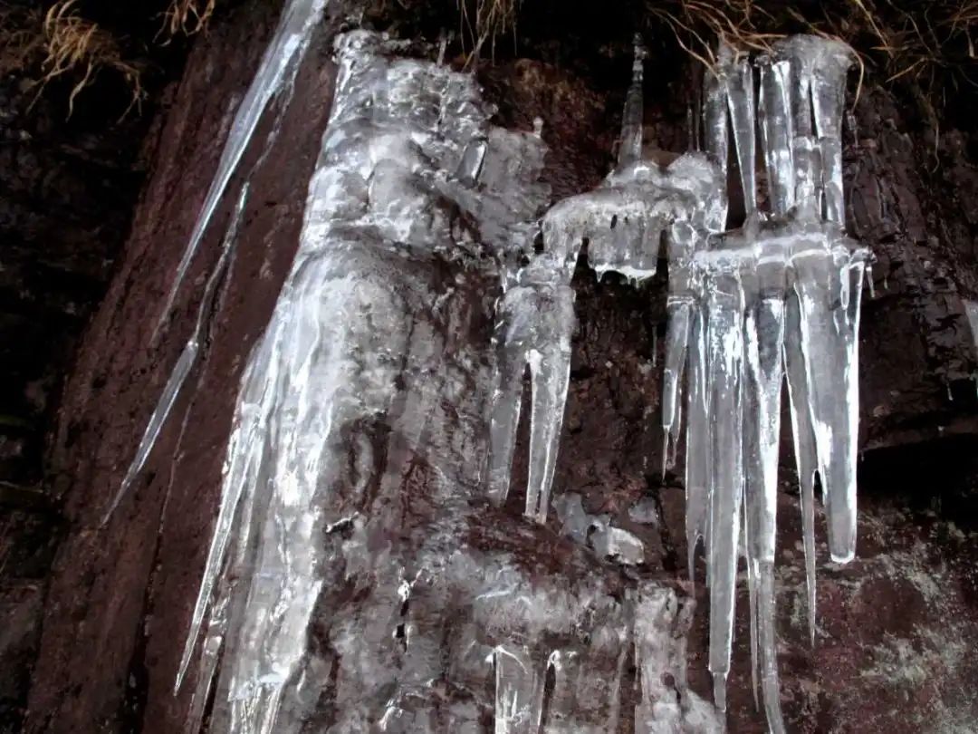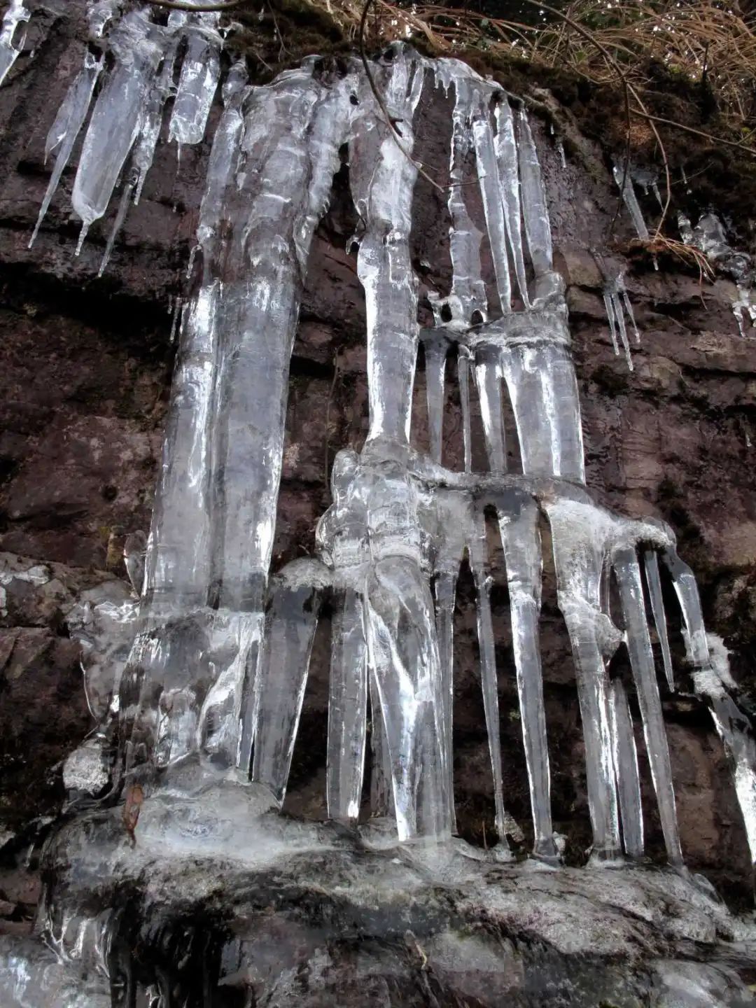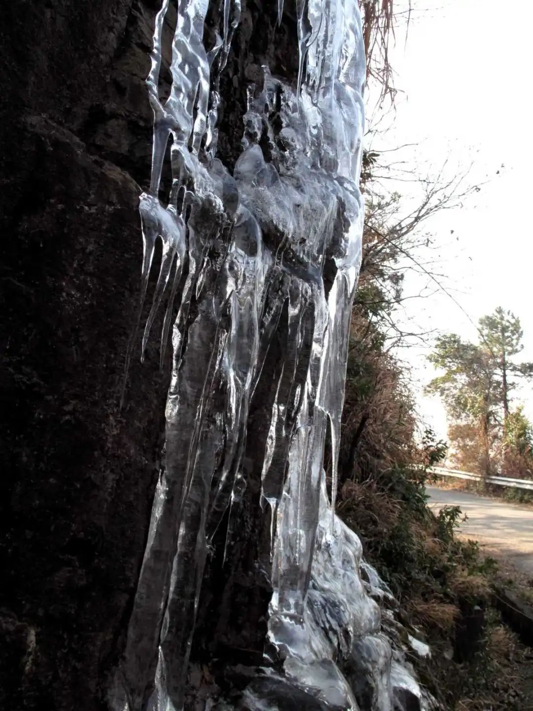 如果气温继续下降,附近的瀑布和悬崖也会呈现出各种有趣的冰景。当然,最著名的地方是四明山森林公园的水帘洞和里村的三折瀑布,以及龙观乡的水门瀑布,然后是宁波丹霞的许多阴坡悬崖。