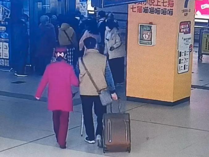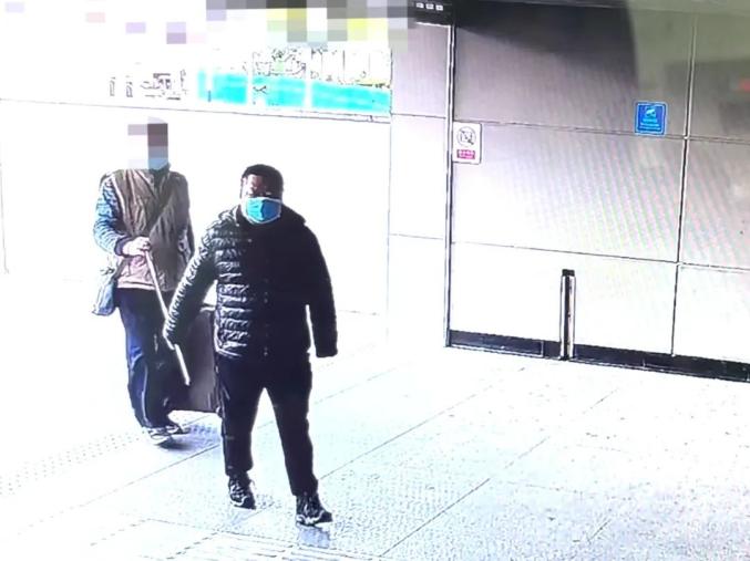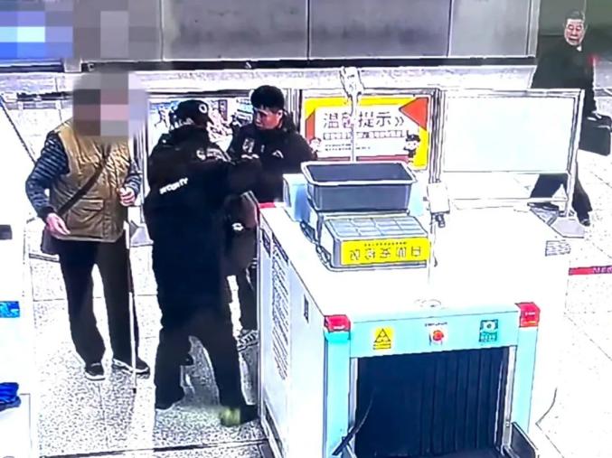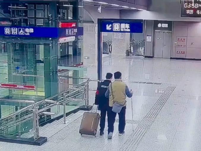 好心人拉着视障乘客进入地铁站。