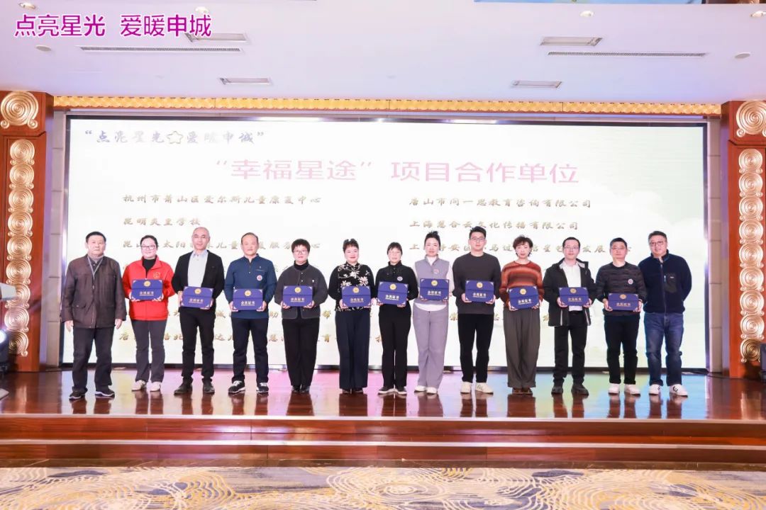 上海市慈善基金会、多特瑞等爱心单位领导和华东师范大学专家组联合启动“幸福星途”产学研合作计划,授予首批合作单位牌照。
