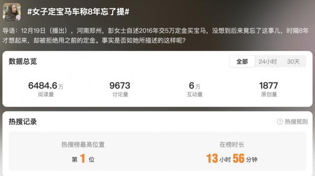 时隔 8 年彭女士说自己想起来了,有钱了,想拿车却被拒绝用之前的定金。