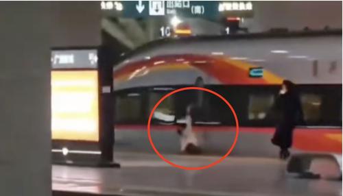 根据现场流出的视频,在站台上,一辆高铁刚刚起步,一人被高铁的门夹住,导致被拖走。