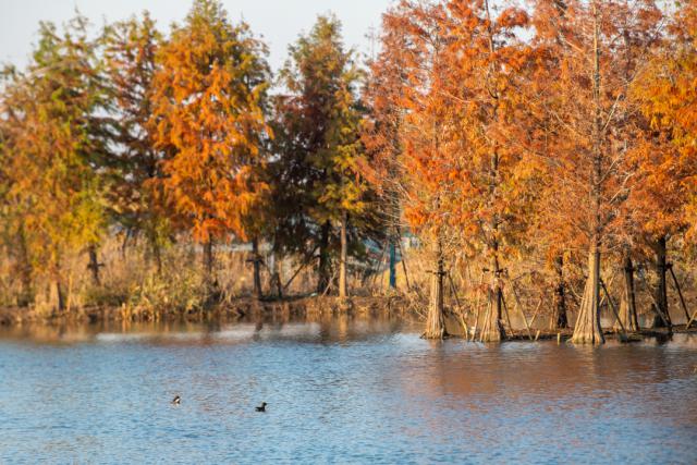 不同种类的色叶树,如青枫、无患子、娜塔橡树、乌邈、枫香、水杉、鸡爪、卫矛、山毛榉等。,也开始变色,为公园的冬景增添了丰富的色彩。