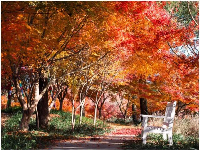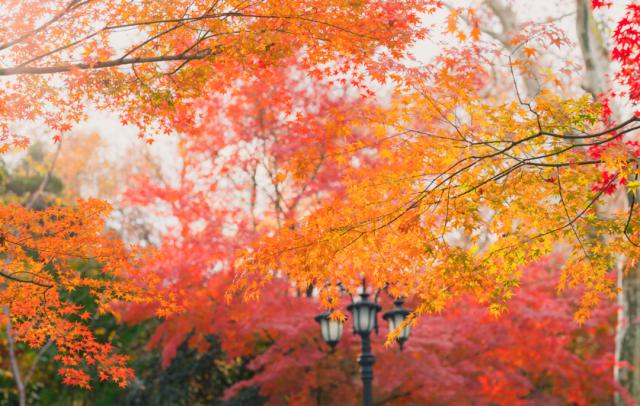 微风吹来,枫树和枫树如火如荼,在阳光下闪闪发光。透过树枝和叶子洒在地上,公园的每个角落似乎都被秋天染成了温暖的颜色。