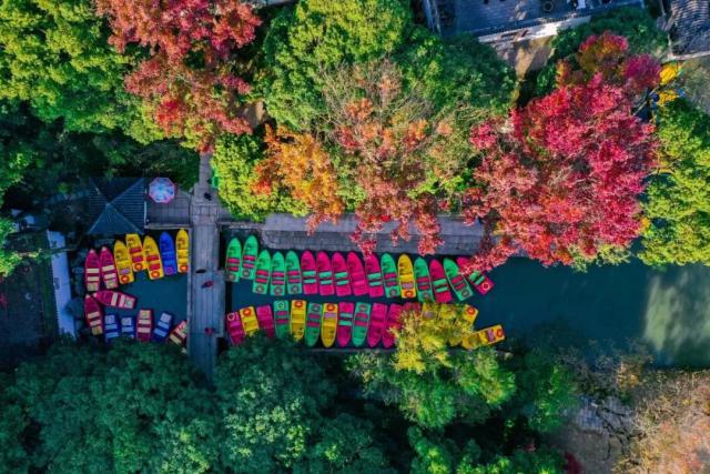 海上秋景园的枫叶已经到了最佳观赏期,1.2万。 初冬时节,株色叶树充满仪式感。