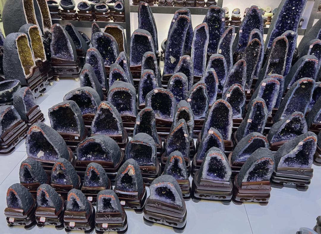 比如一个紫晶洞在东海成本不到1万块人民币,同样规格的产品在亚马逊和eBay上能够卖到1万多美金。