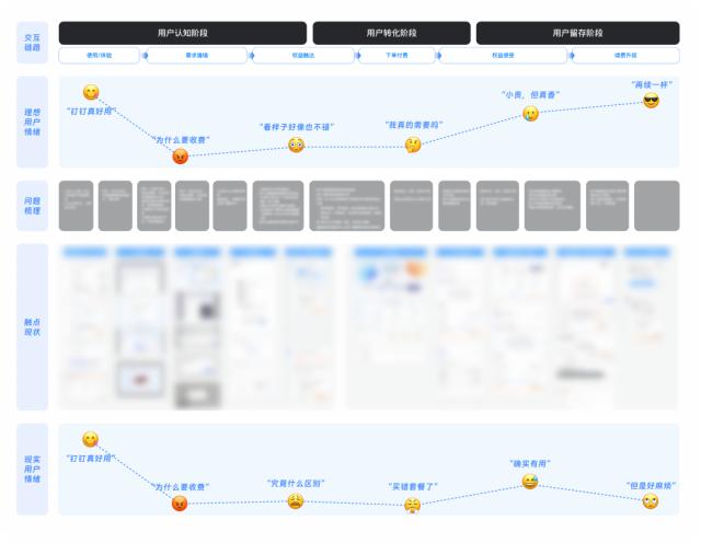 在钉钉 Office 在套件优化工作中,设计师和团队进行了大量的走访,并听取了各个行业。 B 终端顾客的建议感受,将每一张体验卡点一一记录,形成典型的用户旅程图。这个过程并不总是有趣的,有时候需要直接面对顾客的尖锐质疑和抱怨,以及“为什么要花钱?“核心提问...对于长期专注于背后研发的设计师来说,不仅可以显著增加对一线工作复杂性的理解,还可以深刻刷新对终端用户实际需求和使用场景的认知。