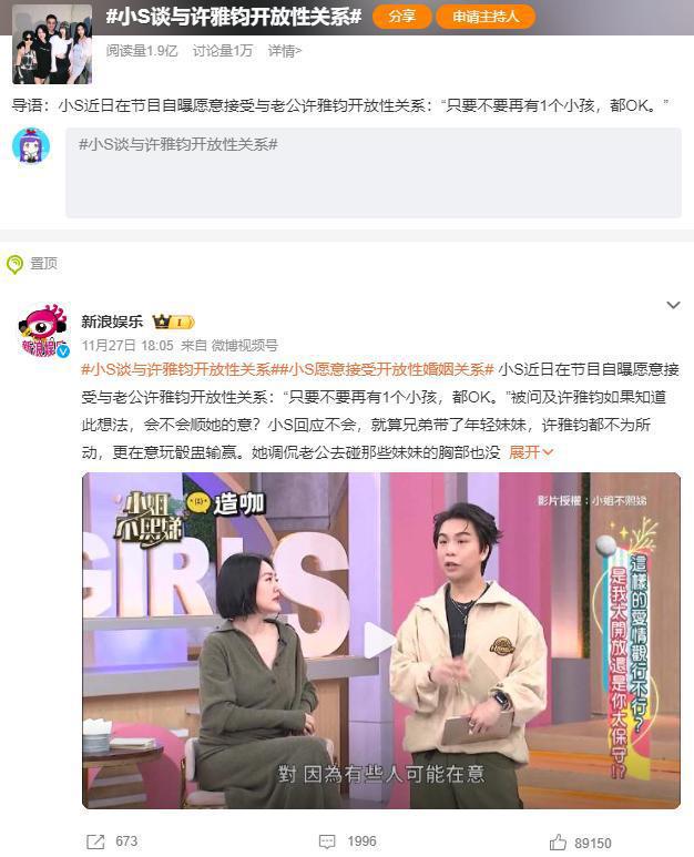 除曾宝仪站出来外,小 S 还迅速站出来为自己的男朋友说话。