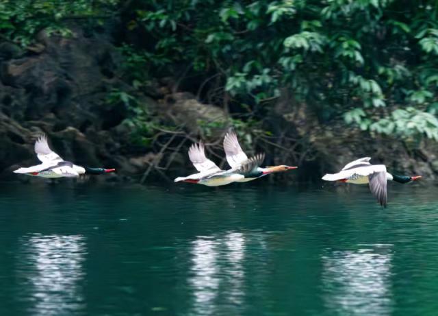 12 月 20 日前,贵州省林业局发布消息称,近日,贵州省林业调查规划院在对过冬鸟类进行同步监测预调查时,将监测记录纳入 53 只有中华秋沙鸭在黔西南北盘江大峡谷国家湿地公园过冬,这是贵州历史上最大的中华秋沙鸭过冬物种。