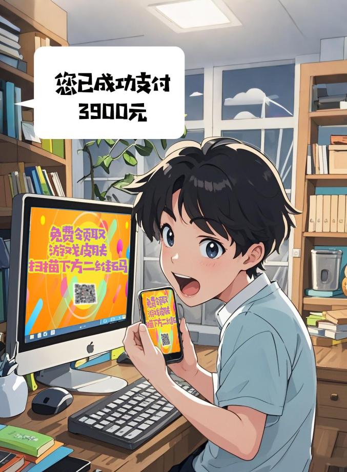 小赵在玩手机的时候,看到一个直播间发布了免费领取游戏皮肤的广告。小赵扫描视频中的二维码,添加了对方的微信号。对方通过微信视频指导他用手机扫码支付28笔,共计3900多元。小赵发现自己被骗了,及时通知父母报警,但对方的IP显示在海外,案件正在调查中。