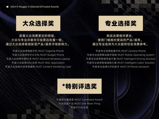 上个月,结合今年科技产业的最新变化和趋势,MUST 设立了组委会「 MUST Awards 2024 」的 13 个奖项,由差评内容中心和麻瓜联盟的创作者共同提名 47 个产品,并从 12 月 4 日打开投票通道。