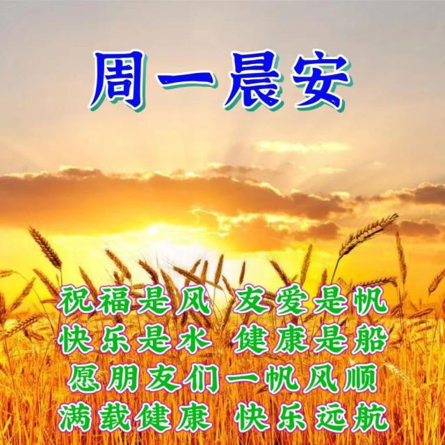 周一早上,我衷心祝愿你事业如火如荼,工作得心应手,爱情甜蜜如初。愿你每天都充满力量,祝你好运如流。愿你身体健康,吃得甜,每天心情舒畅,一切顺利,一切顺利!