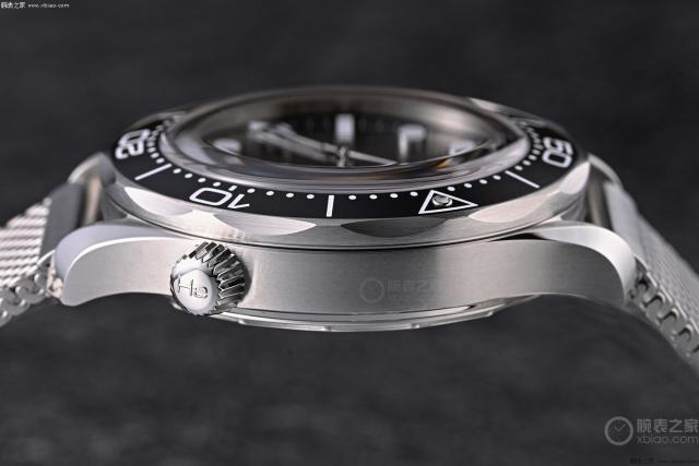 眼睛移动到黑色表圈,草酸阳极氧化铝的使用堪称天才之笔。这种独特的材料赋予了表圈深邃而简单的黑色质感,仿佛凝聚了无尽的海底夜色。