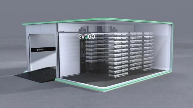 换电在 EVOGO 独家更换电站完成。一个电站可以存储 48 块状“巧克力”,占地面积约为 3 一个标准停车位,至少可以是 16 汽车提供换电。每个电池的换电速度不到一分钟,每个换电站至少可以服务一个小时的车辆。 20 台。