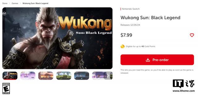 现在,一个名字叫做《Wukong Sun: Black Legend》这款游戏在任天堂商店上架。很明显,这款游戏借用了《黑神话:悟空》(Black Myth:Wukong)》名字的山寨作品,定价 7.99 美金(IT 家族备注:目前的约定 58.3 人民币)。
