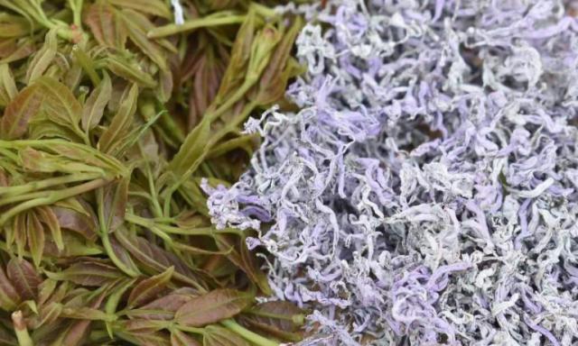 而且必须一芽两三叶,挂满紫霜,这样才能富含黄酮花青素。