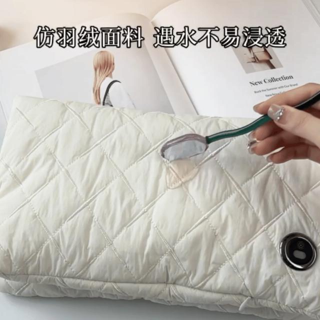 侧边做了隐形侧兜,拉开拉链,将线条、充电宝放入其中,简洁美观。