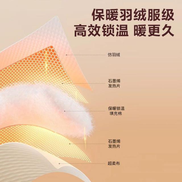 它热得久!羽绒服级抗风 保暖填充棉 毛绒超柔布 两层石墨烯加热膜,锁温更长久!