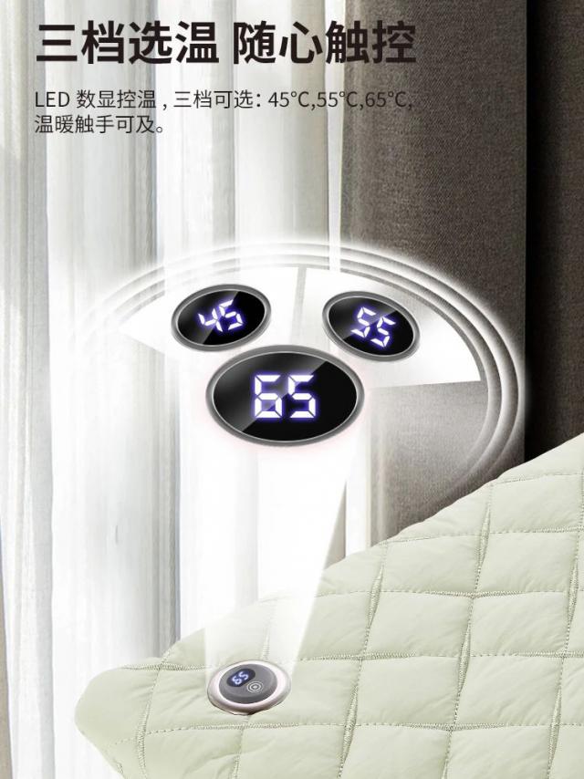 短按即可调整,45 温度微热,初冬御寒;55 温度湿热,寒流外敷;65 温度透热,冬季外敷。