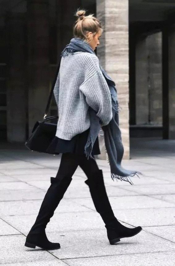 大衣,大毛衣,搭配运动鞋,靴子