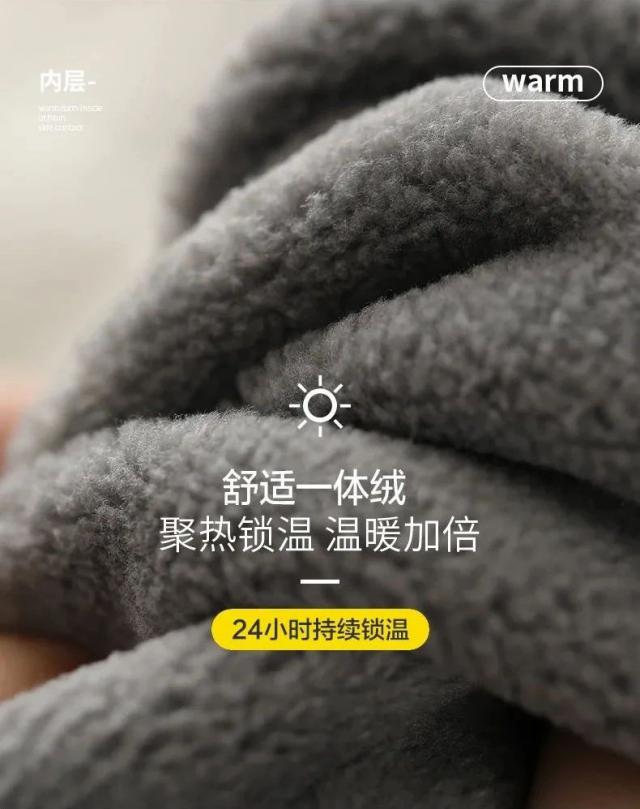 1. 厚实的一体绒,迅速升温,储热保暖,舒适舒适,零度穿着它暖如火炉;