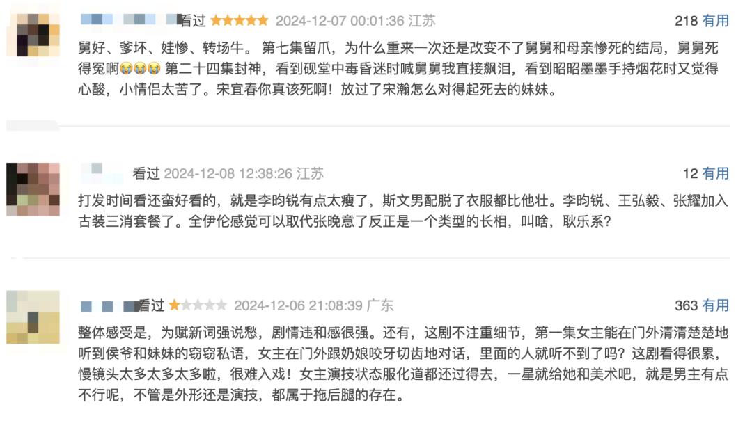 目前这部剧已经在豆瓣评分了7.5,呈现出口碑两极的趋势。很多热门豆瓣短评指出,这部剧存在剧情不流畅、衔接性差、逻辑漏洞、短剧太慢等问题。