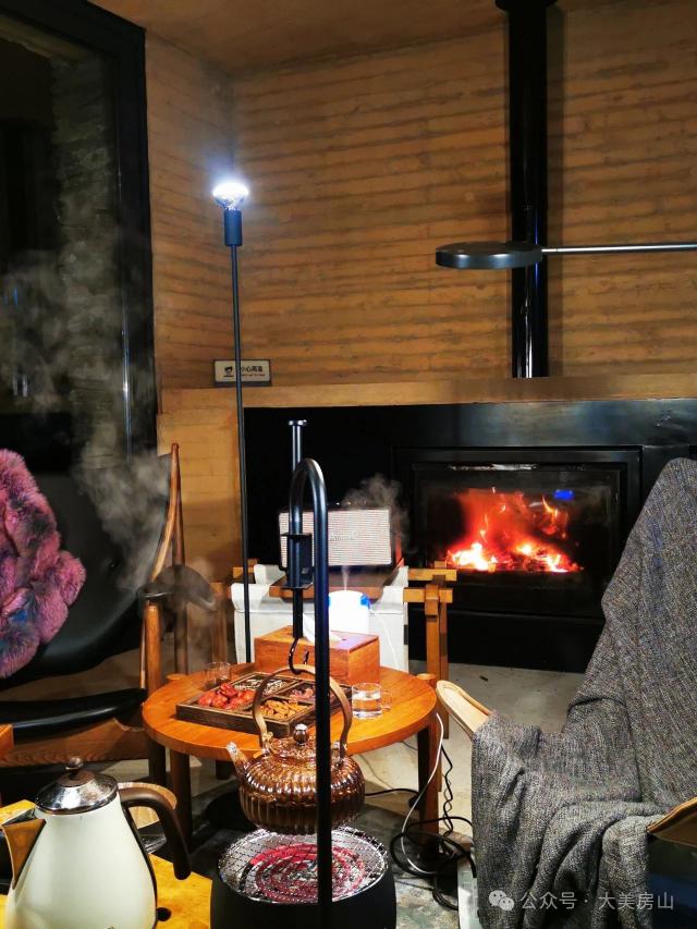 走进云岭山房,首先映入眼帘的是燃烧的真火壁炉。火的弹跳反映了房子每个角落的温暖和宁静,驱走了冬天的凉爽,点燃了心中的温暖。围着炉子坐着,茶香袅袅,和三两个知己聊桑麻,让心灵在茶和友谊的交织中得到滋润。