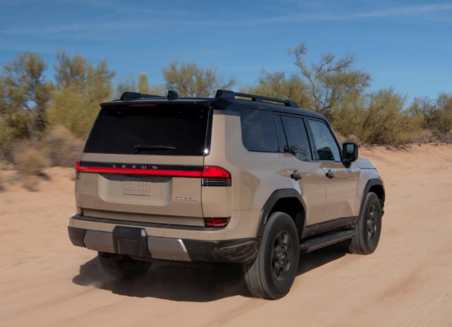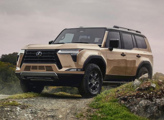 全新雷克萨斯 GX 基于 GA-F 平台搭建,整体方正硬朗的造型看起来充满力量感,特别是 OVERTRAIL 版型也是标准的 AT 轮胎,给人一种非凡的视觉感觉。