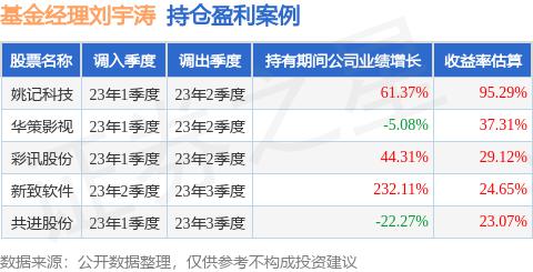 新元中证由刘宇涛管理。 1000 指数增强发起式 A 基金在 23 年 1 季度购买姚记科技,拥有姚记科技 1 个季度后在 23 年 2 季度销售。所有期间的估计收益率为 在此期间,姚记科技95.29%。 2022 年至 2023 年度报告归属净利润增长达到 61.37%。