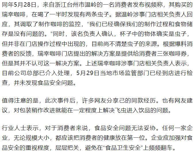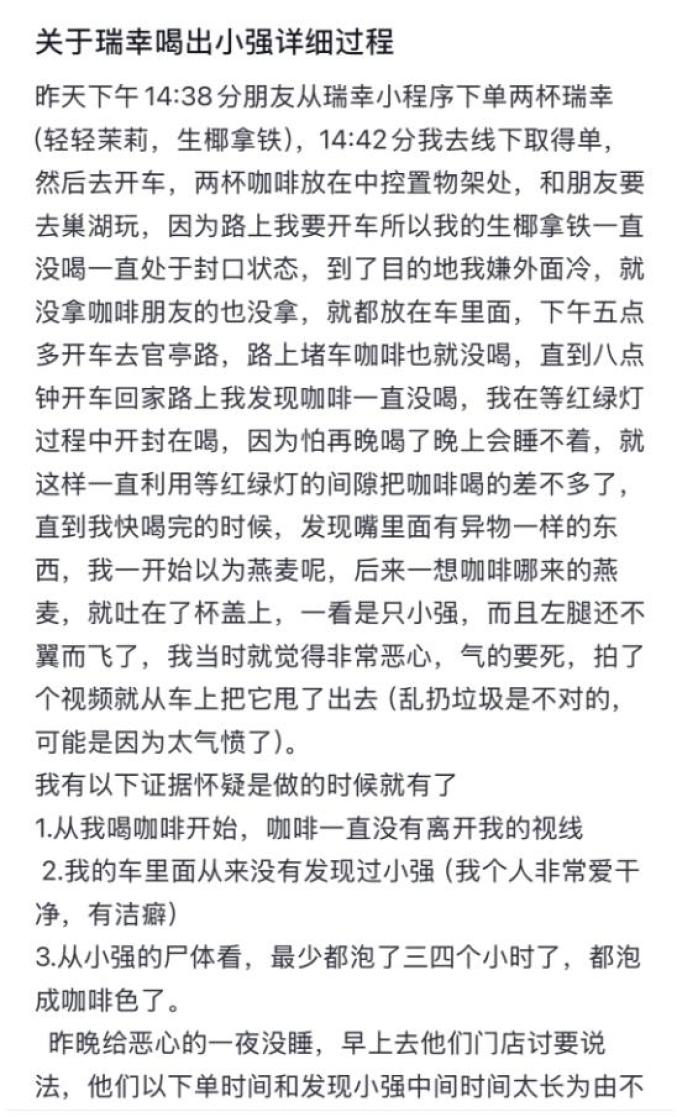 十二月二十日,有网友爆料,在瑞幸咖啡里喝小强(蟑螂)。