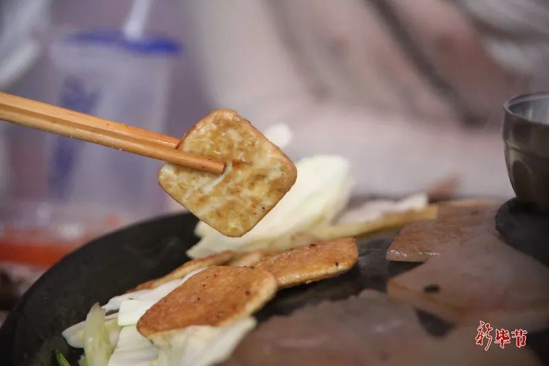 临近中午,当地豆腐干商家袁玉梅的豆腐干很少。“现在已经卖了100多包豆腐干。外国朋友更喜欢臭豆腐干,越臭越香。”袁玉梅还带了灶火和锅具,临时建了一家煎锅店,香味吸引了路过的游客。