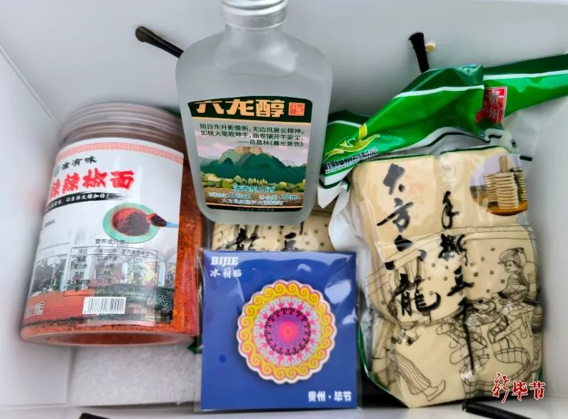 “两包六龙豆干,一瓶辣椒粉,一瓶当地酿造的白酒,两个特色冰箱贴纸。”仁怀玩家吴波在朋友圈展示了一段“六龙礼物”的开箱视频。