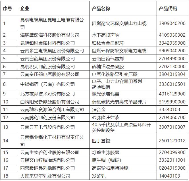 18家!云南省制造业第五批单项冠军企业名单拟公布。