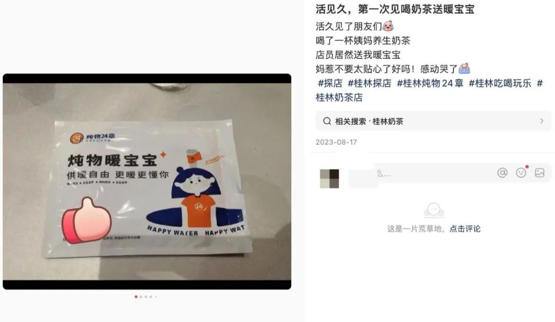 更加令人意想不到的是,炖菜24章热饮外卖杯还贴上了暖宝宝。,网民表示,饮料到手时非常烫,“养胃更暖心”。