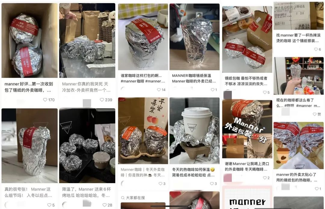 Manner咖啡变成了“锡纸粽子”,以保持外卖不变凉。
