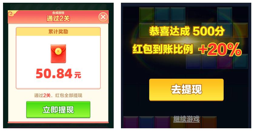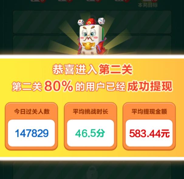 为鼓励我们继续玩下去,游戏中不时会跳网友。**成功提现通知。而且,不断提示今天通关10万人,整个 50分钟就能拿到500多。