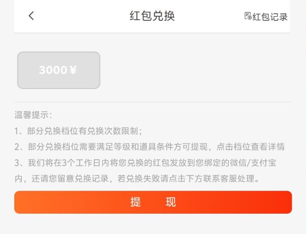 而且,红包的提现门槛是 3000元。这意味着你必须保存足够的数量来提取现金。