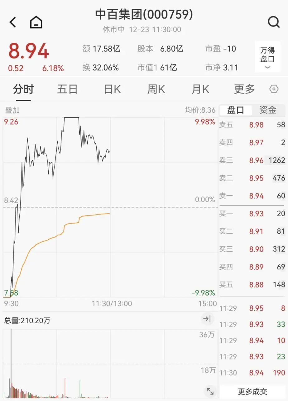 个股方面,零售板块人气股中百集团盘上演“地板”行情,走出16天10板,但随后震荡下探。