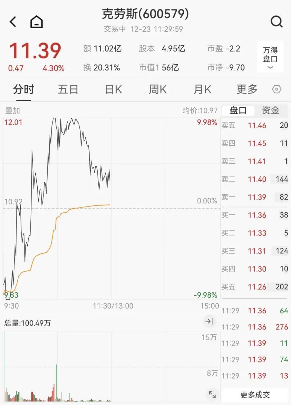 并购概念股克劳斯盘里实现了“地板”,但随后迅速下跌,此前已经实现了三连板。