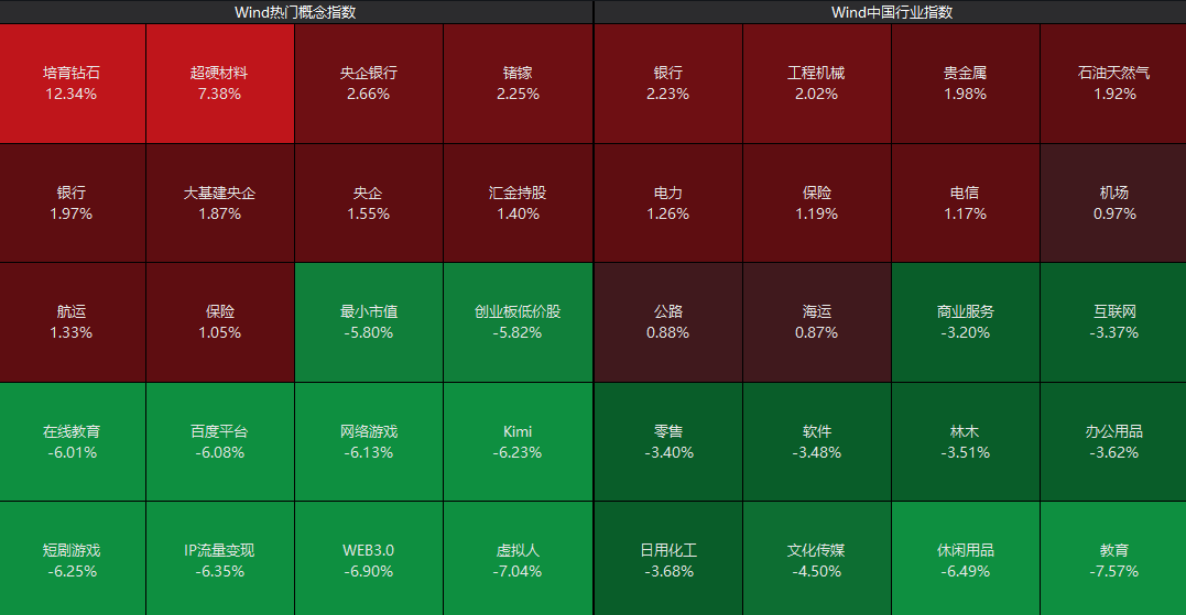 从板块来看,钻石板块的培育上升,大金融板块的变化上升,央企、贵金属、电力等板块的局部活跃;然而,AI的应用方向领先,教育、虚拟人和文化媒体领先。