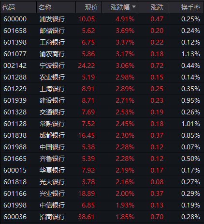 a股大金融板块大幅上涨,银行股大幅波动,工行涨幅超过3%,再创历史新高。上海浦东发展银行、邮政储蓄银行和农业银行的涨幅居前。