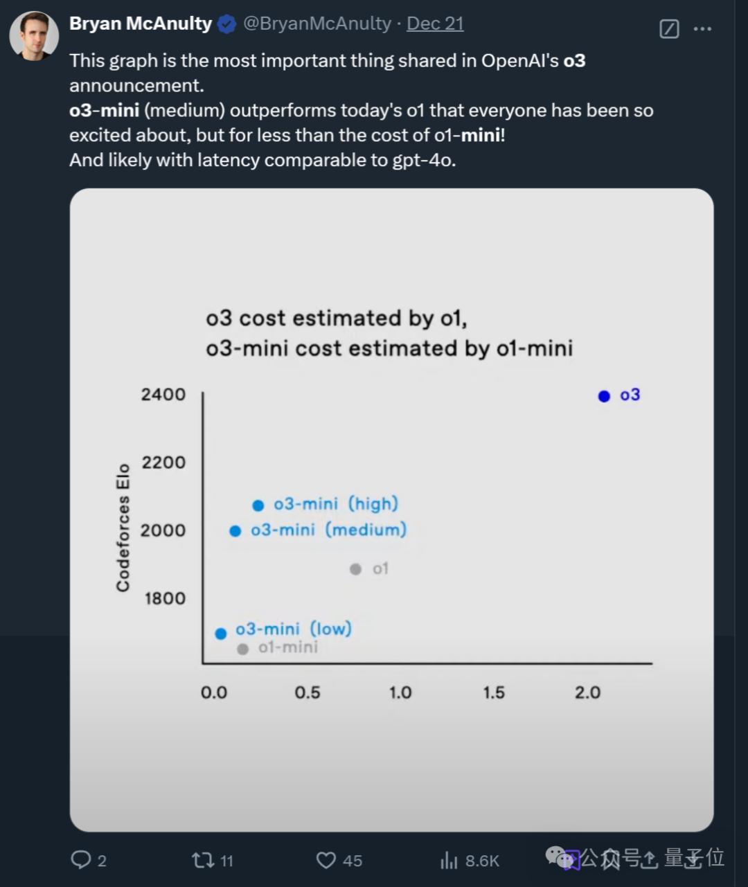比o1 mini性能更强,价格更低,新王o3的性价比-mini再一次点燃AI圈的热议。