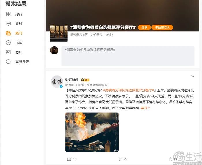 此前,今年年初,“年轻人报复性挤压3.5分餐厅”、“评分低的店铺好吃”之类的话题引起了热烈的讨论,原因是有用户在网上名人餐厅“踩雷”高分后产生了逆反心理。