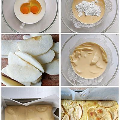 2、✅ 2 ⃣️将苹果洗净切片,加入面糊中,倒入模具中