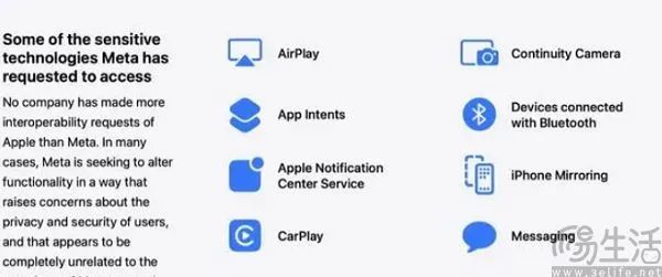 DMA不仅是欧盟用来敲击科技巨头的大棒,现在似乎也成了巨头之间相互滚动的工具。就在最近,苹果突然发表声明称,Meta在DMA框架下向任何其他企业提出了15个互操作请求,这些请求可能会损害用户的安全和隐私。