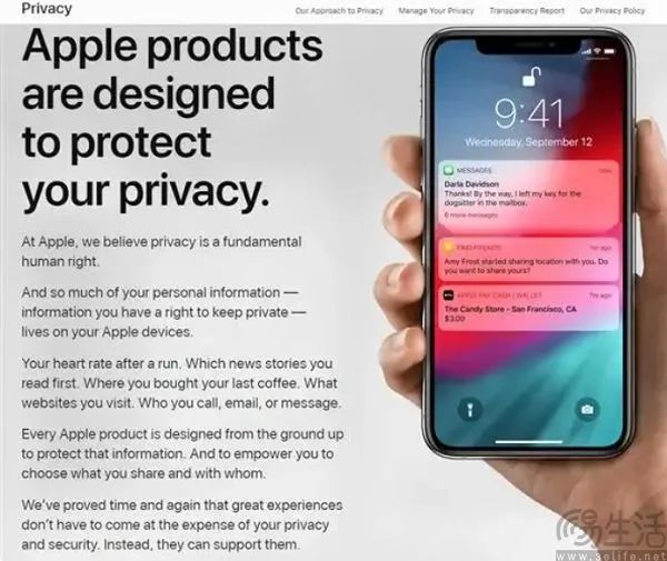 库克将主动进行DISS 事实上,Meta的原因很简单,因为隐私保护是当时苹果宣传的一个重点概念。就在2019年的CES消费电子展上,没有参加会议的苹果甚至在场外做广告,宣传他们对用户隐私的重视。“隐私保护先锋”是苹果多年来为自己设置的“个人设计”。官网甚至有专门的版块来解释他们在隐私保护方面的努力。