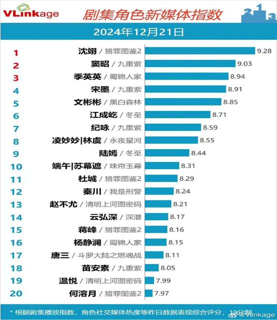 最新电视剧中最受欢迎的人气角色已经发布。让我们看看前十名名单中是否有你最喜欢的角色。 ? 檀健次产生的猎罪画家排名第一。孟子义饰演的古装美人窦昭紧随其后!《猎罪图鉴》续集和古装剧《九重紫》已经成为目前最受欢迎的两部杰作。
