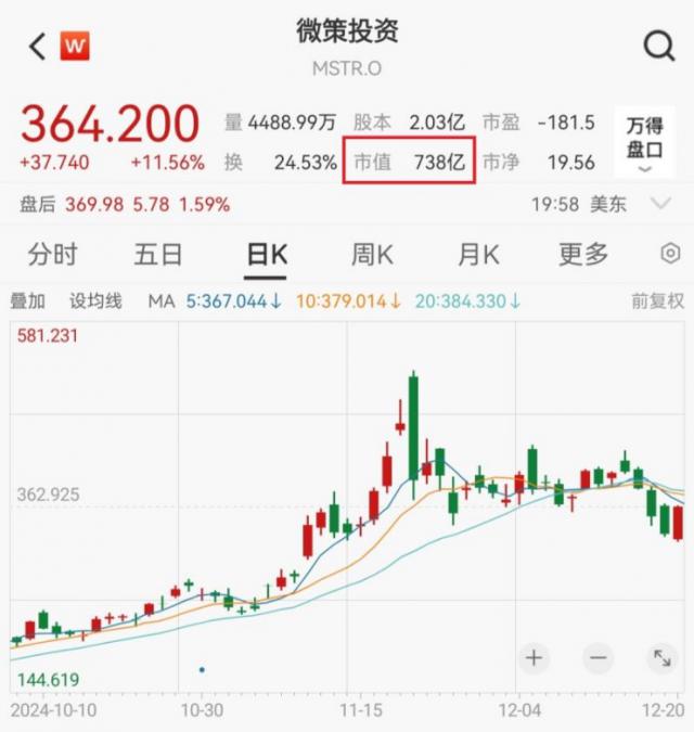 当前,BTC目前的交易价格约为 95000 美元,微策略拥有大约货币价值。 402.47 亿美金;12 月 20 日,微策略市值为 738 亿美金。
