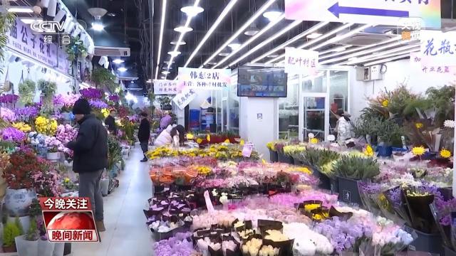 随着新年的临近,花卉市场也非常热闹。在江苏南京、山西大同等地区的几个大型花卉市场,红火喜庆的年夜花摆放在显眼的位置。许多市民走进花店,选择自己喜欢的花,为新年做准备。